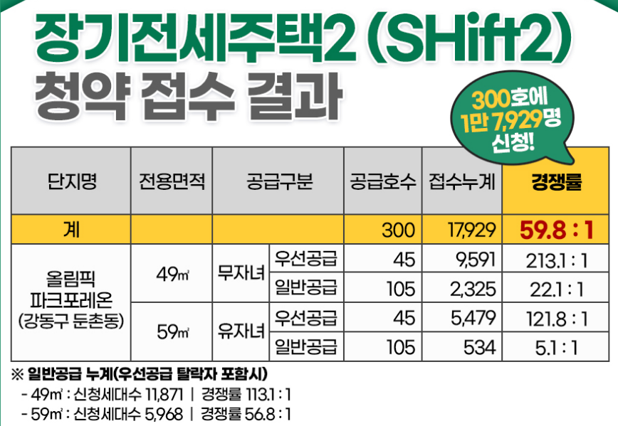 제1차 올림픽파크포레온: 300호 모집, 최고 경쟁률 216대 1