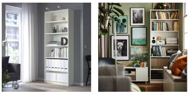 BILLY 책장 이건 뭐 설명이 필요 없을 만큼 유용해요. 다양한 크기와 컬러 옵션 덕분에 서재나 거실 인테리어에 딱이에요.