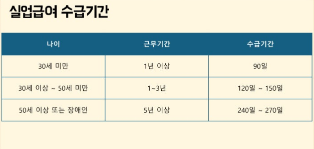 :수급 기간은 연령과 근속연수에 따라 다릅니다