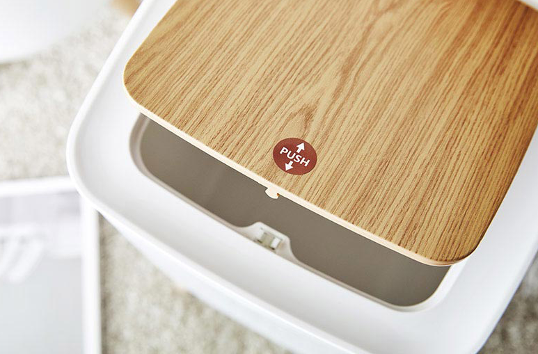 2. 우드 라이크 원터치 빈 10L 휴지통 – 위생과 감성 모두 챙긴 디자인