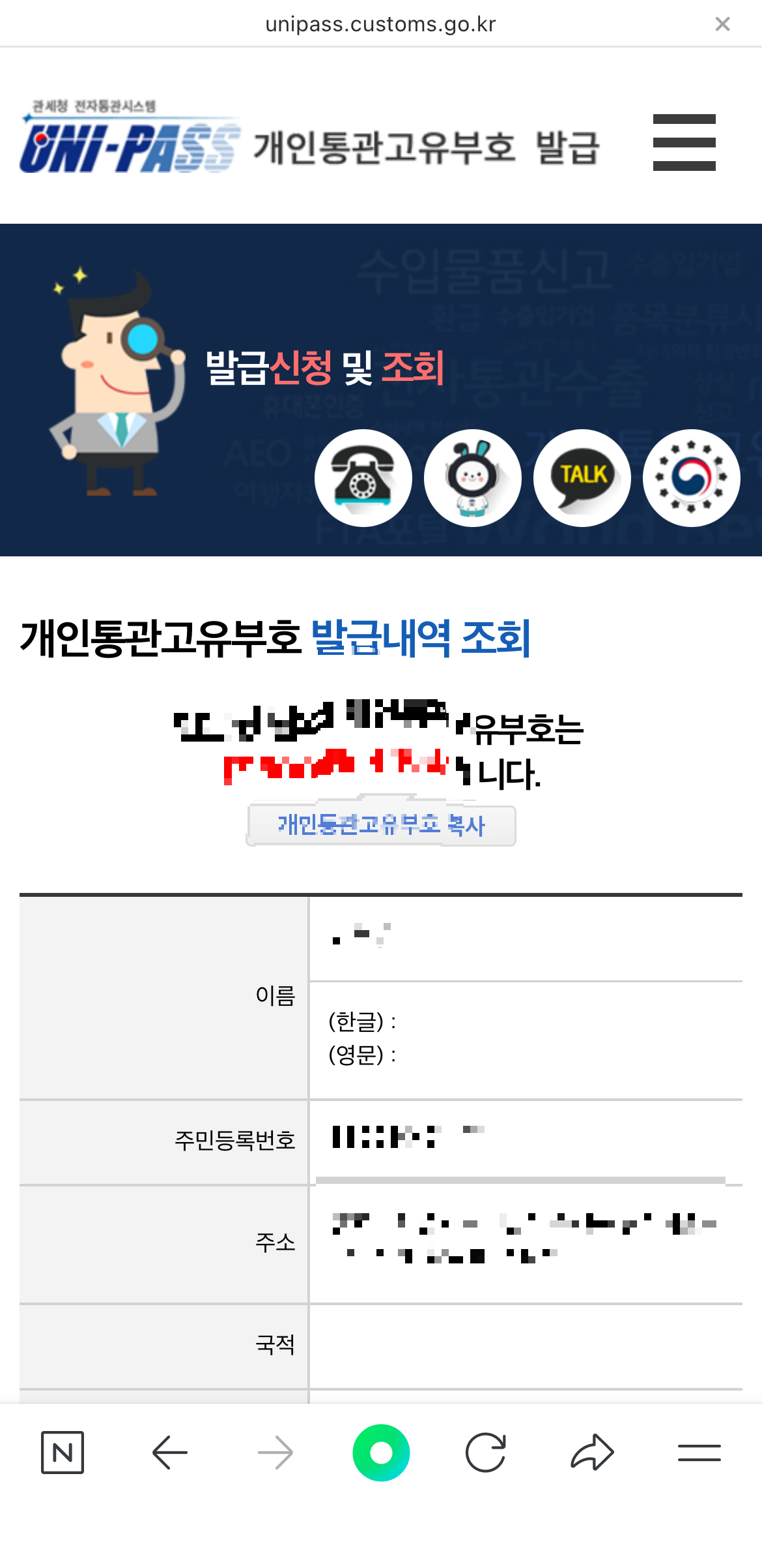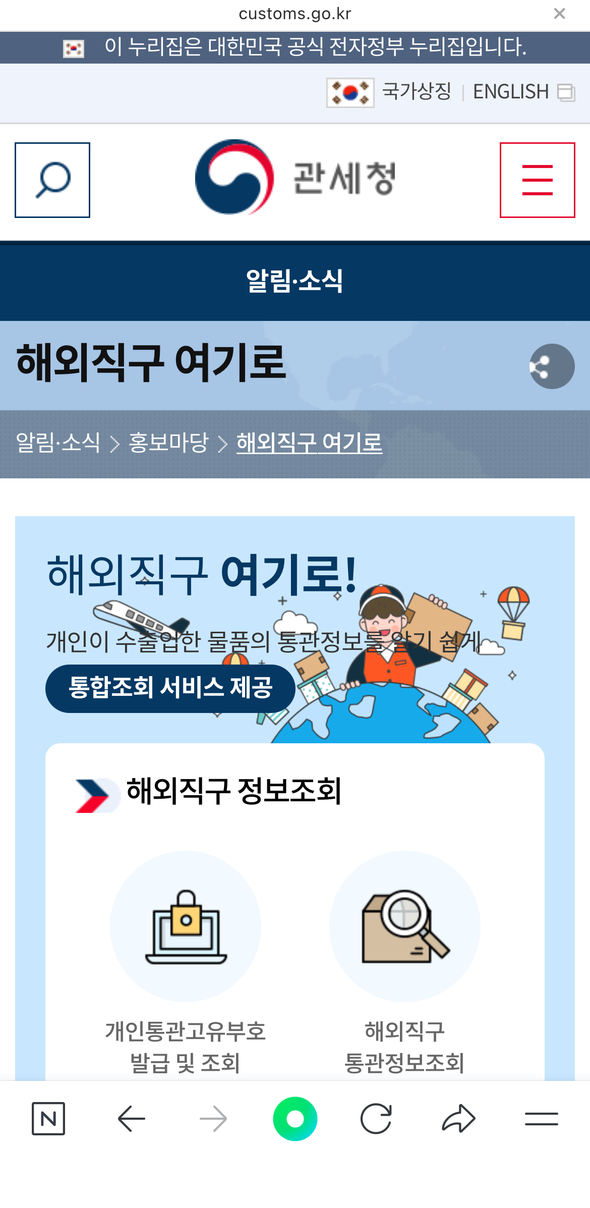 관세청 앱이나 모바일 웹에서 1분 만에 조회 가능하답니다.