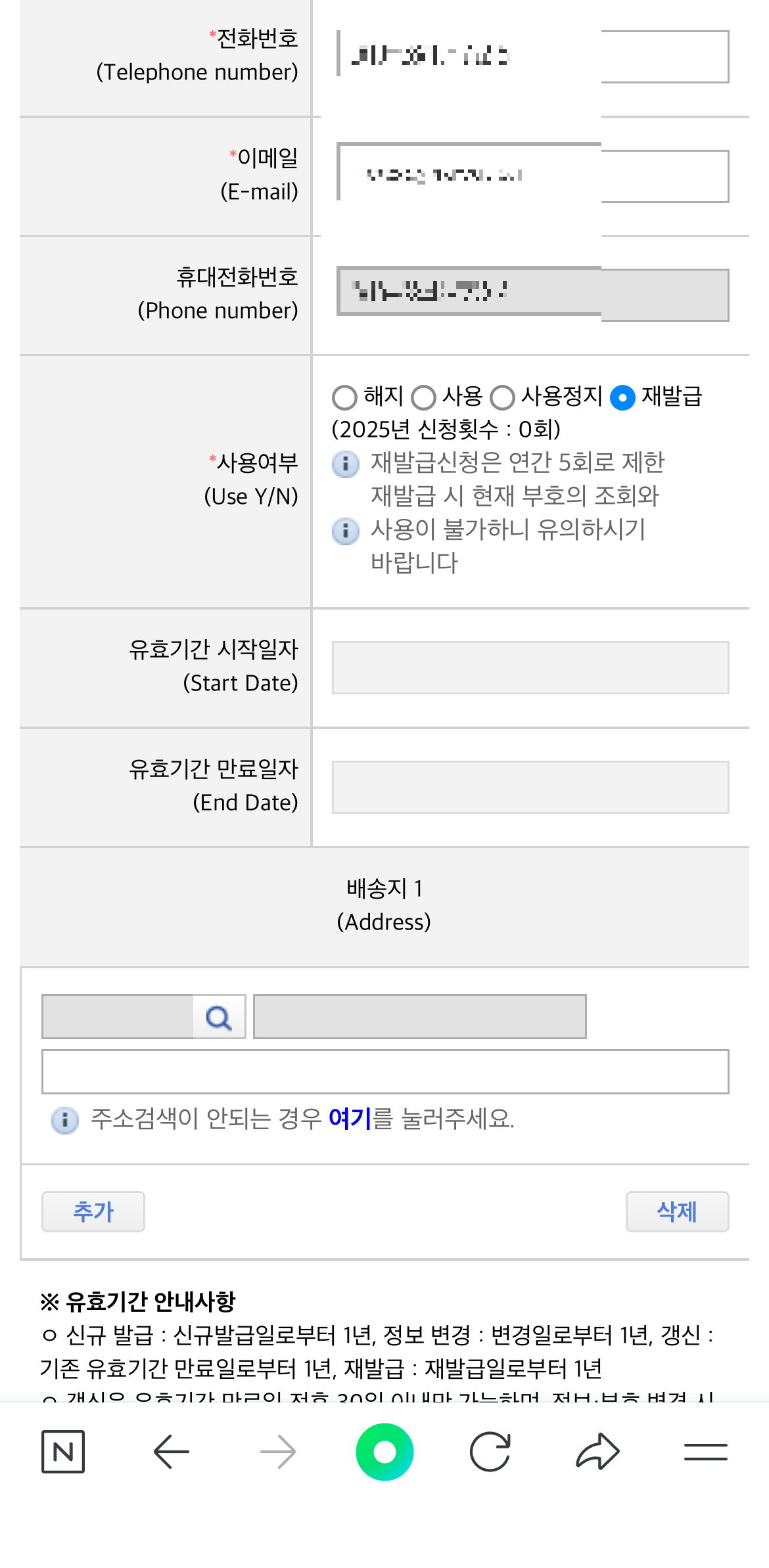재발급 시 주의사항