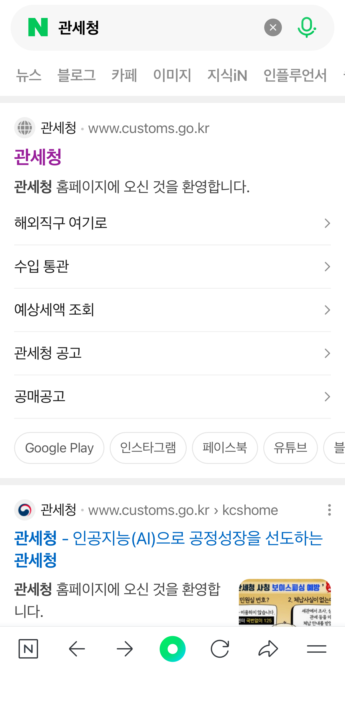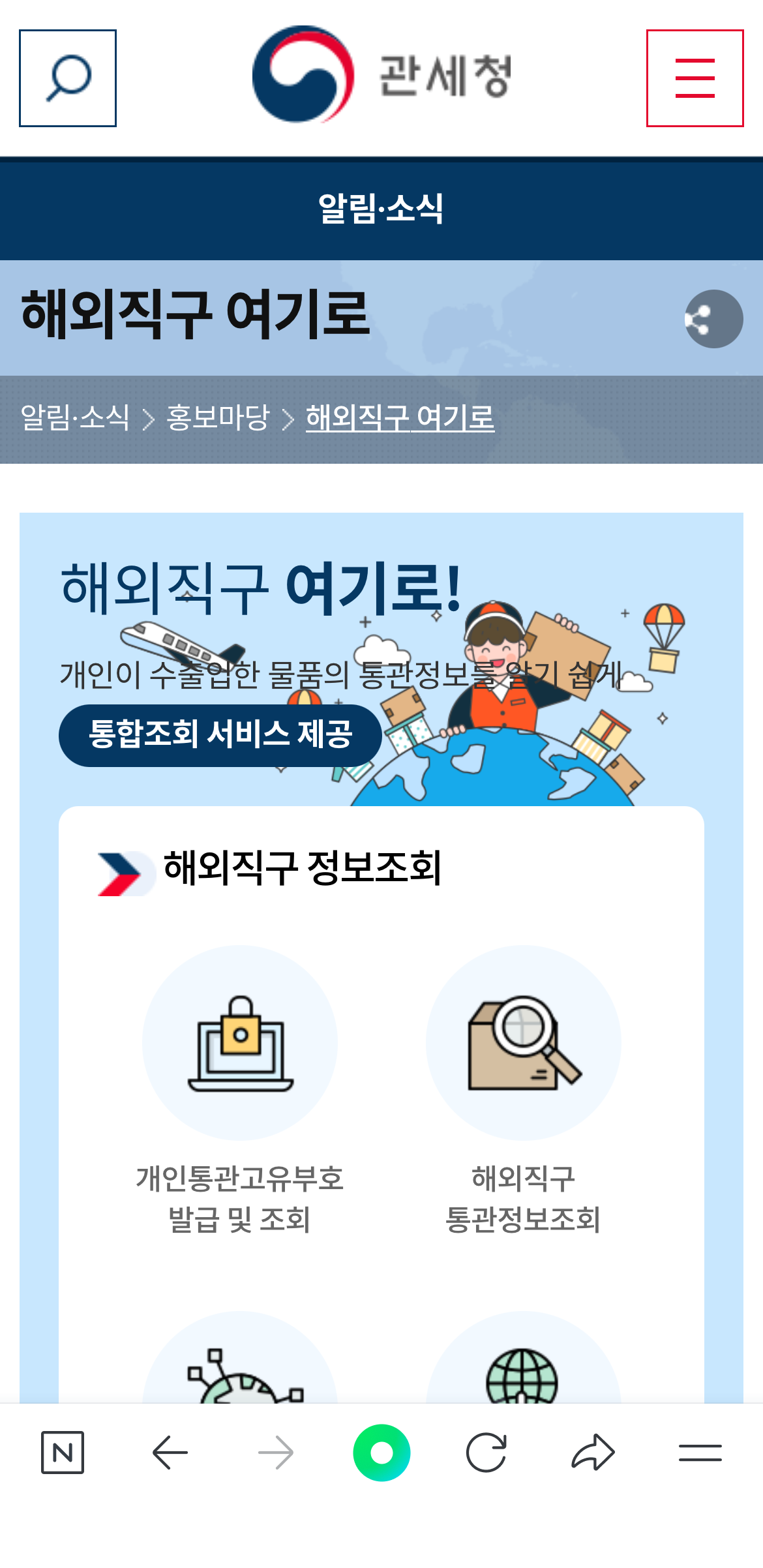 - 관세청 앱 설치 또는 모바일 웹 접속