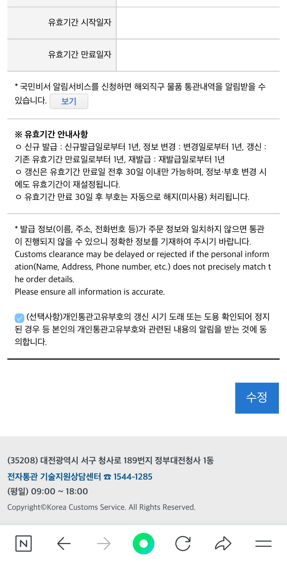 개인통관번호 재발급 방법