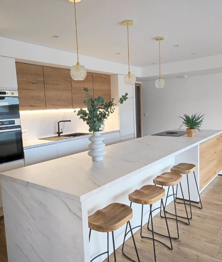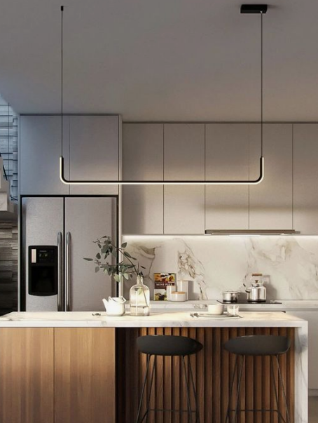 일반적으로, 주방 조명 설계에서는 주방 아일랜드 위에 펜던트 조명을 설치하여 조명을 균일하게 분배하는 것이 보통입니다. 이러한 설치는 요리 공간을 더욱 밝고 활기차게 만들어줍니다.