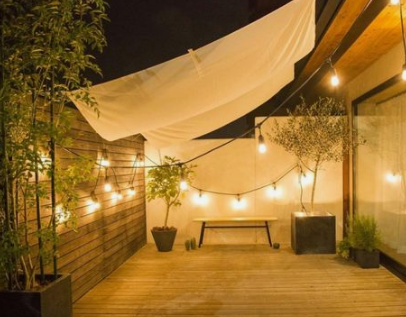 베란다에 가랜드 식 줄 전구조명을 설치하면 분위기를 조성하는 데 도움이 됩니다. 거기에 캠핑 랜턴을 활용하여 야외 분위기를 연출할 수 있습니다. LED 캔들이나 조명은 작은 공간에서도 안전하게 사용할 수 있어 적합합니다.