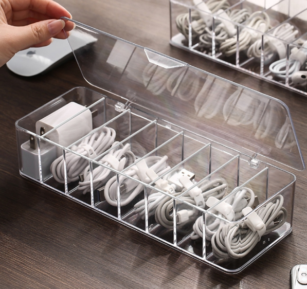 이어폰, 충전기, 케이블 요즘 선이 많죠? 엉키키 쉬운 선들을 깔끔하게 정히 할 수 있는 정리함을 사용하면 한눈에 찾기 쉽고 깔끔하게 정리 할 수 있습니다. 케이블 뿐 아니라 화장소품, 문구류, 악세사리도 정리해서 넣어둔다면 더 깔끔한 책상 서랍이 될 것입니다.