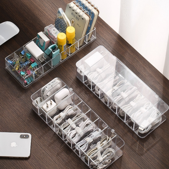 이어폰, 충전기, 케이블 요즘 선이 많죠? 엉키키 쉬운 선들을 깔끔하게 정히 할 수 있는 정리함을 사용하면 한눈에 찾기 쉽고 깔끔하게 정리 할 수 있습니다. 케이블 뿐 아니라 화장소품, 문구류, 악세사리도 정리해서 넣어둔다면 더 깔끔한 책상 서랍이 될 것입니다.