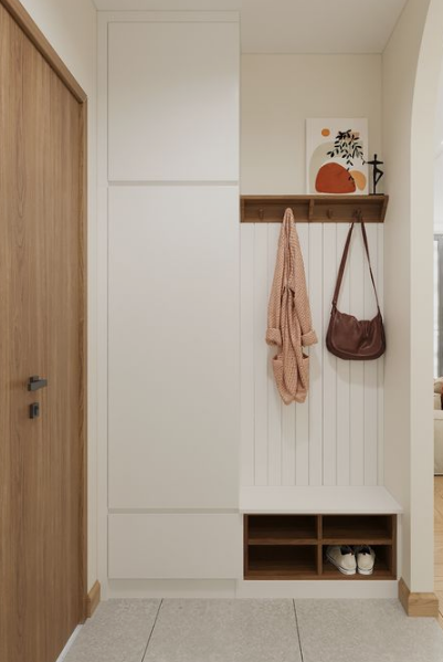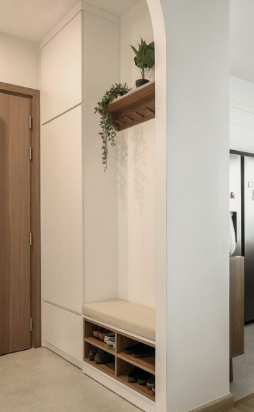 현관은 실용적인 공간이기도 합니다. 현관에는 물건을 수납을 생각 보다 많이 요하는 곳이기도 합니다. 신발, 외투, 우산 등을 정리할 수 있는 저장 공간은 깔끔한 인상을 주는 데 중요합니다. 이것은 신발 뿐아니라 외출할때 자주 가지고 다니는 것들을 현관에 두어야 하는데, 신발장이나 벽걸이 행거를 활용하여 깔끔하게 정해보세요. 또한 벽장과 어울어진 간이쇼파를 만든다면 신발을 신거나 벗을때 편하게 앉아서 신고 벗고 할 수 있는 고급진 공간도 만들어질 것입니다.