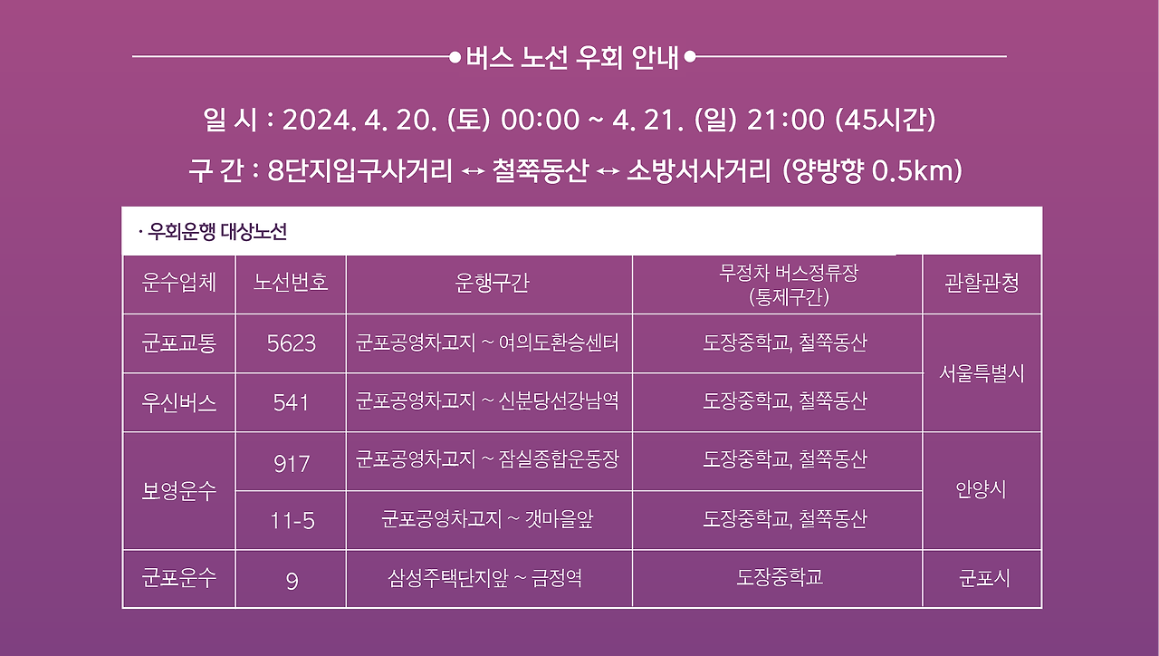 (차없는거리 진행 시 차량 통제로 인해 경기폴리텍고등학교에서 하차 후 도보 10분) - 초막골생태공원