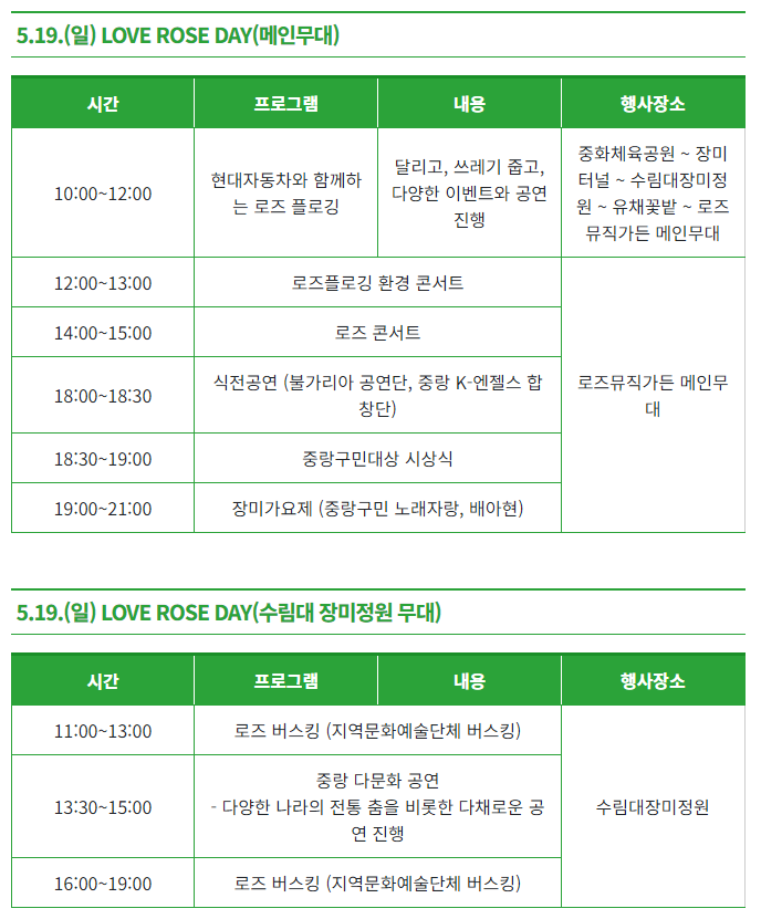 장소 : 중랑장미공원 및 중화체육공원 일원