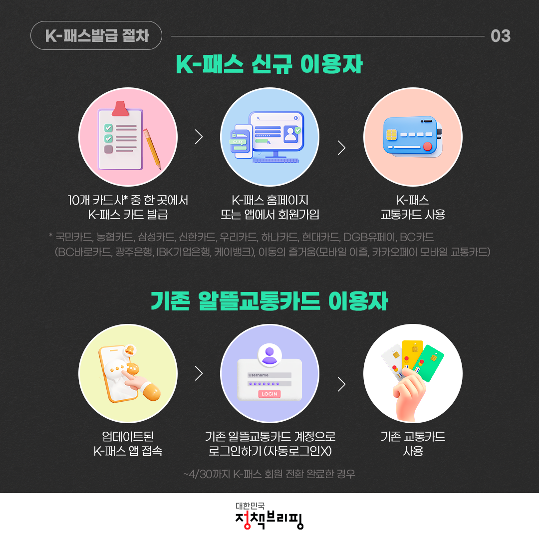 기존 알뜰교통카드 이용자 (~4/30까지 K-패스 회원 전환 완료한 경우)