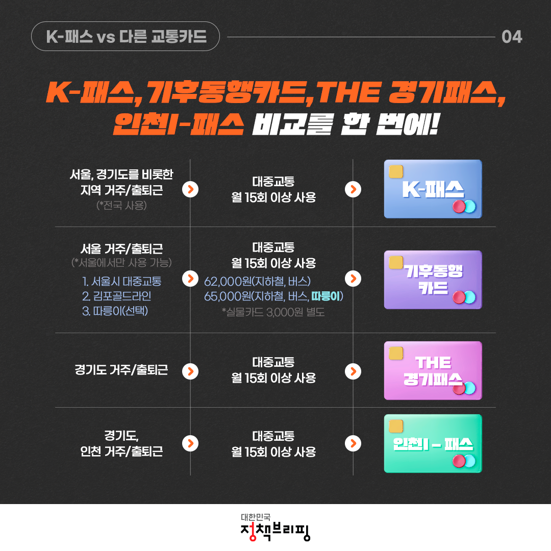 ●서울, 경기도 거주자 : 월 15회 이상 대중교통 이용 시 K패스 추천