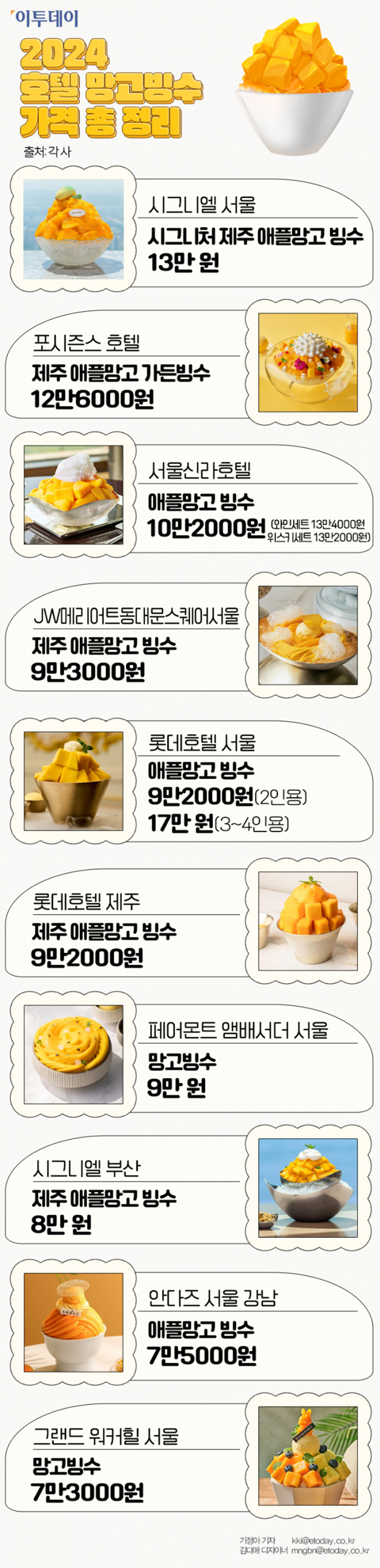 2024년 여러 호텔에서 선보이는 망고빙수는 여름철 인기 메뉴로 다양한 스타일과 재료를 사용해 각 호텔마다 독특한 매력을 발산하고 있습니다. 각기 호텔마다 시그니처로 가격경재하듯 점점 비싸게 비싸게 하고 있는데요. 아무래도 호텔이라는 특수한 공간과 희귀한 장소 그리고 고가의 망고빙수가격때문인지 한번 쯤 먹어는 보고 싶다 하는 아이템이 되어가고 있답니다. 호텔마다 어떤 망고빙수를 내세우는지 대표적인 호텔의 망고빙수를 알아보겠습니다.