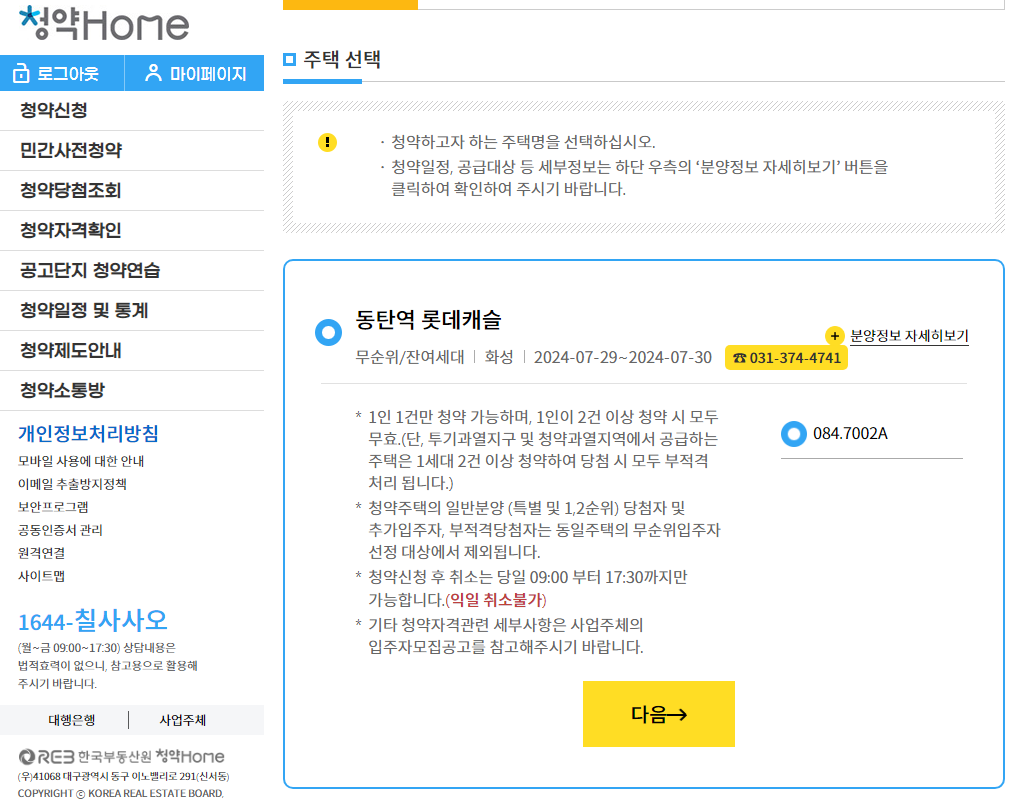동탄역 롯데캐슬 무순위 줍줍은 청약홈 한국부동산원에서 신청할 수 있습니다.