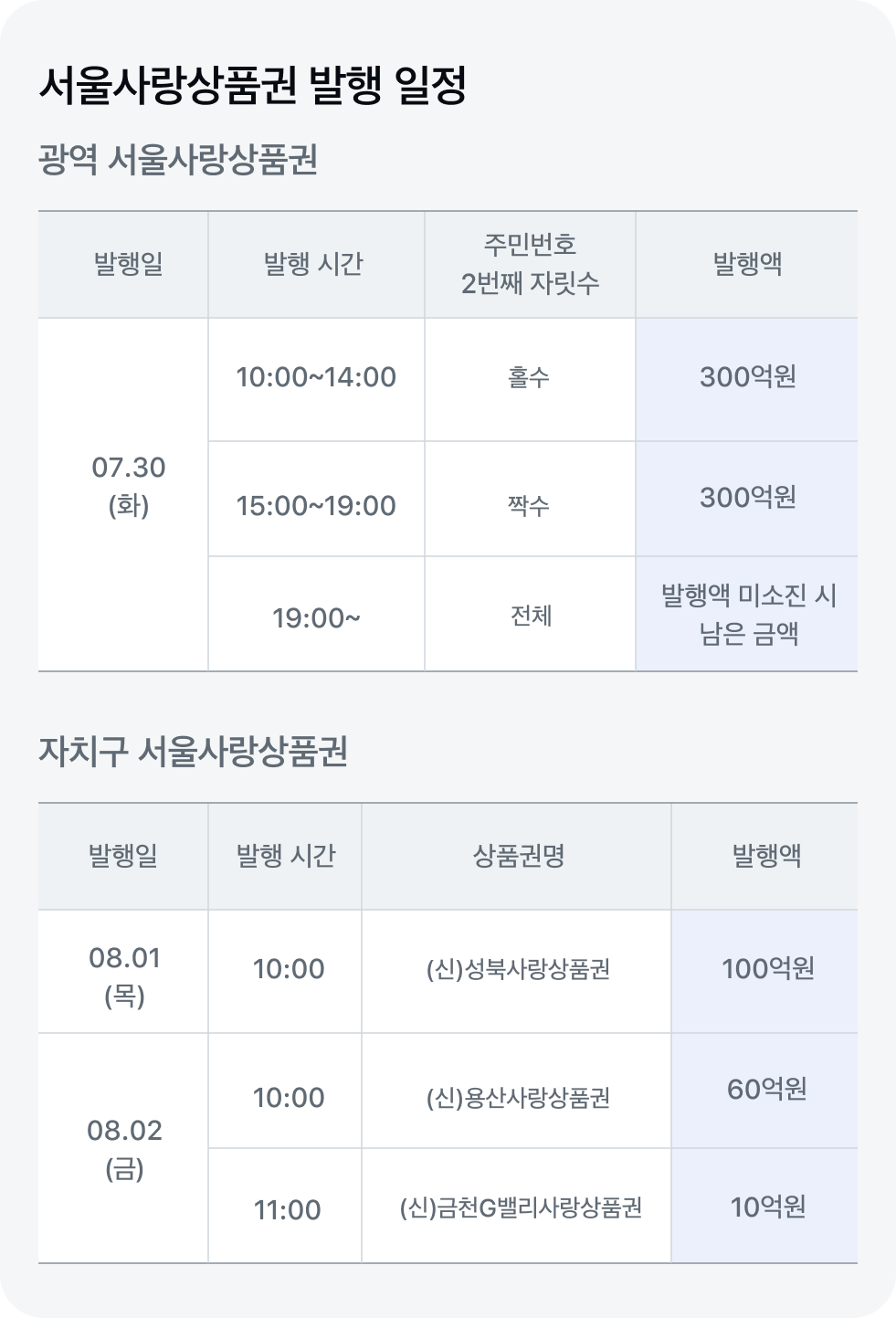 8월 1일: 성북, 용산, 금천 등 일부 지역 자치구 상품권 발행