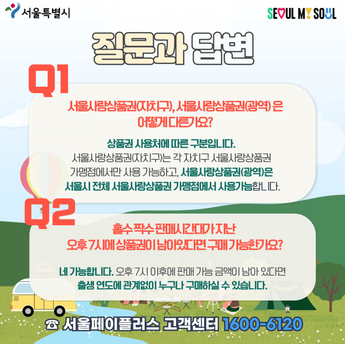광역 상품권: 서울 시내 전체 가맹점에서 사용 가능해요.