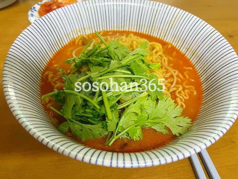 고수를 좋아하는 저는 마무리는 잔뜩 올린 고수였어요. 진짜 탄탄면의 마늘향의 매콤함과 땅콩의 고소함이 딱 느껴지실거예요.