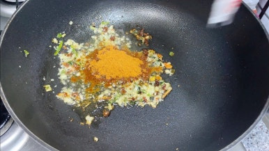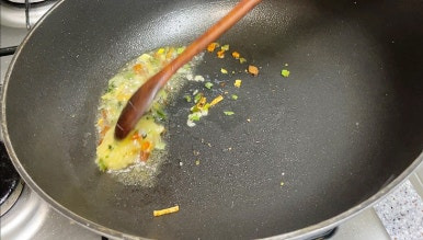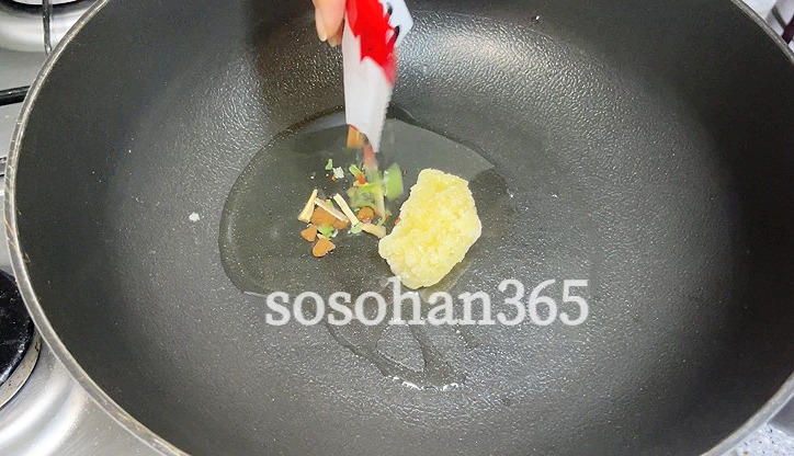 - 기름에 건더기스프와 다진마늘을 볶아줍니다.