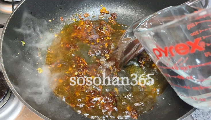 어느정도 풍미가 나도록 스프를 볶으면 2인분 기준으로 900ml 정도 의 물을 부어줍니다. 그리고 불은 강불로 해서 팔팔 끓여줘요.