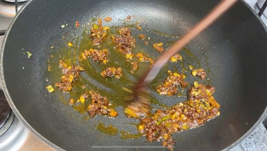 - 기름에 건더기스프와 다진마늘을 볶아줍니다.