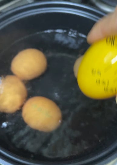 이제 에그타이머를 계란과 함께 넣어주세요.