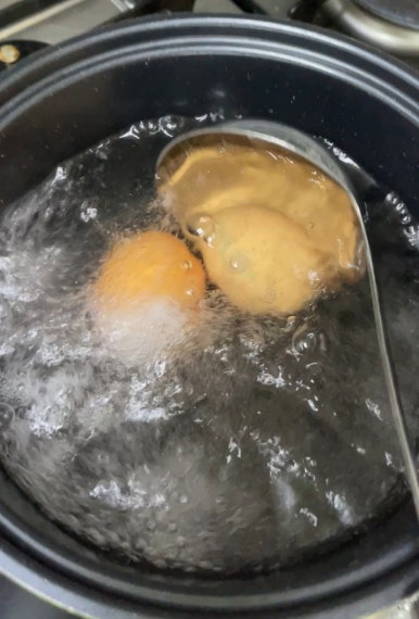 이 과정은 계란 껍질이 매끈하게 벗겨지도록 도와준답니다.
