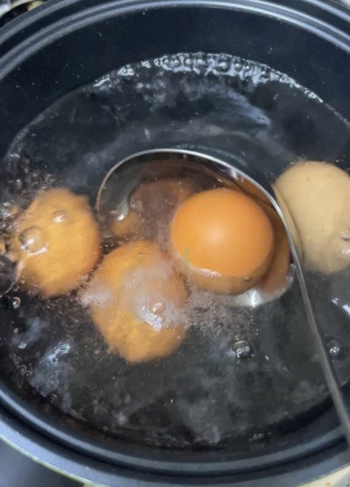물이 끓어오르면 계란을 조심히 넣어주세요.