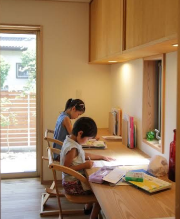 형제자매가 있다면, 긴 책상에서 나란히 공부하는 것도 방법이에요.